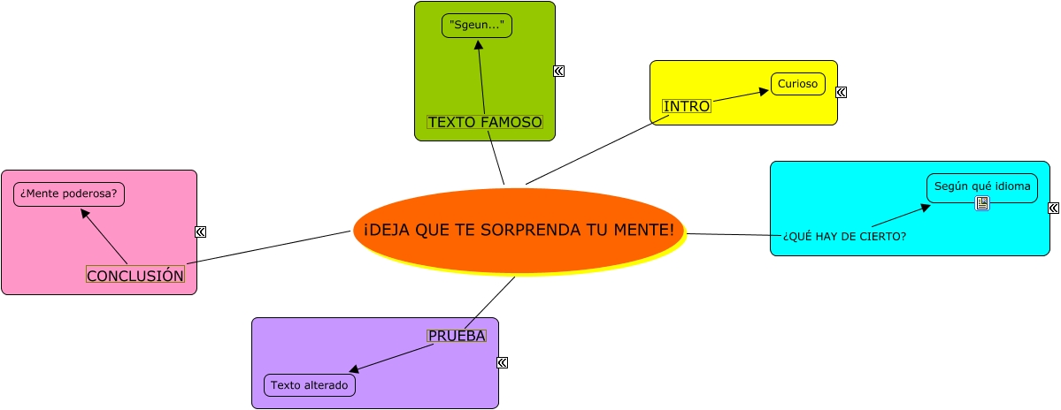 This Concept Map, created with IHMC CmapTools, has information related to: A lo mejor el orden de las letras no importa, ¡DEJA QUE TE SORPRENDA TU MENTE! INTRO Curioso, ¡DEJA QUE TE SORPRENDA TU MENTE! CONCLUSIÓN ¿Mente poderosa?, ¡DEJA QUE TE SORPRENDA TU MENTE! ¿QUÉ HAY DE CIERTO? Según qué idioma, ¡DEJA QUE TE SORPRENDA TU MENTE! PRUEBA Texto alterado, ¡DEJA QUE TE SORPRENDA TU MENTE! TEXTO FAMOSO "Sgeun..."