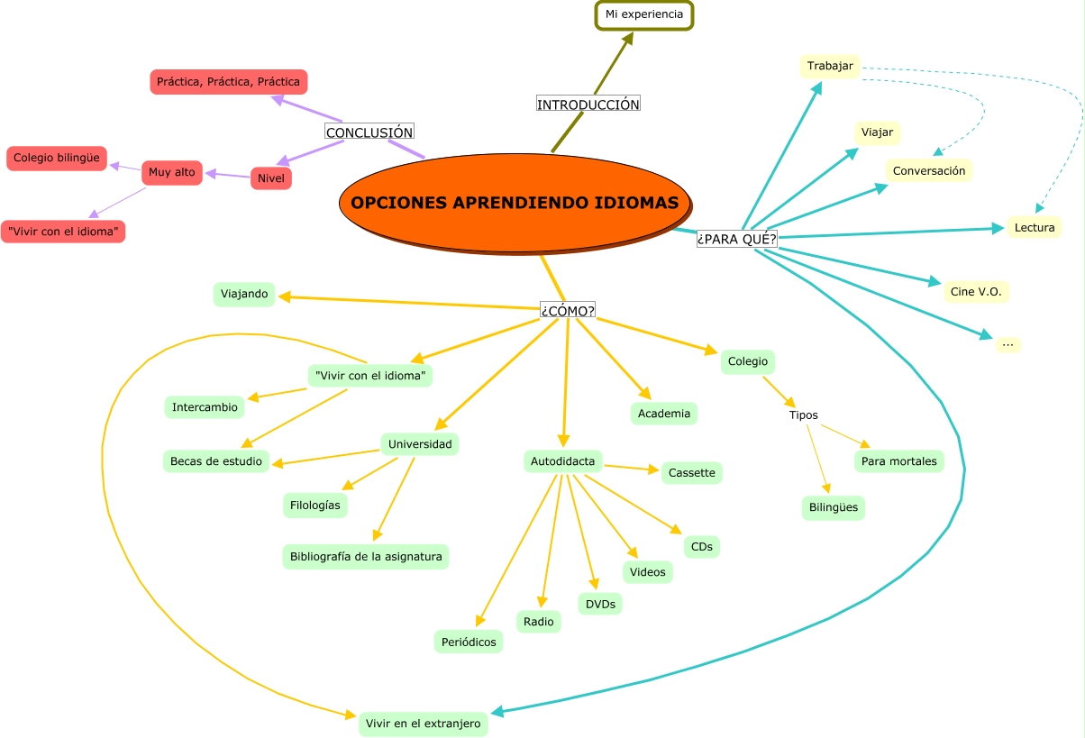 This Concept Map, created with IHMC CmapTools, has information related to: Opciones aprendiendo idiomas, OPCIONES APRENDIENDO IDIOMAS ¿CÓMO? Viajando, "Vivir con el idioma" Intercambio, OPCIONES APRENDIENDO IDIOMAS INTRODUCCIÓN Mi experiencia, OPCIONES APRENDIENDO IDIOMAS ¿CÓMO? Colegio, Universidad Filologías, OPCIONES APRENDIENDO IDIOMAS ¿CÓMO? Academia, Muy alto Colegio bilingüe, Autodidacta Cassette, Autodidacta DVDs, Trabajar Conversación, Universidad Becas de estudio, "Vivir con el idioma" Vivir en el extranjero, Autodidacta Periódicos, Trabajar Lectura, Universidad Bibliografía de la asignatura, OPCIONES APRENDIENDO IDIOMAS ¿PARA QUÉ? Lectura, Colegio Tipos Bilingües, OPCIONES APRENDIENDO IDIOMAS CONCLUSIÓN Práctica, Práctica, Práctica, OPCIONES APRENDIENDO IDIOMAS ¿CÓMO? Autodidacta, Autodidacta CDs